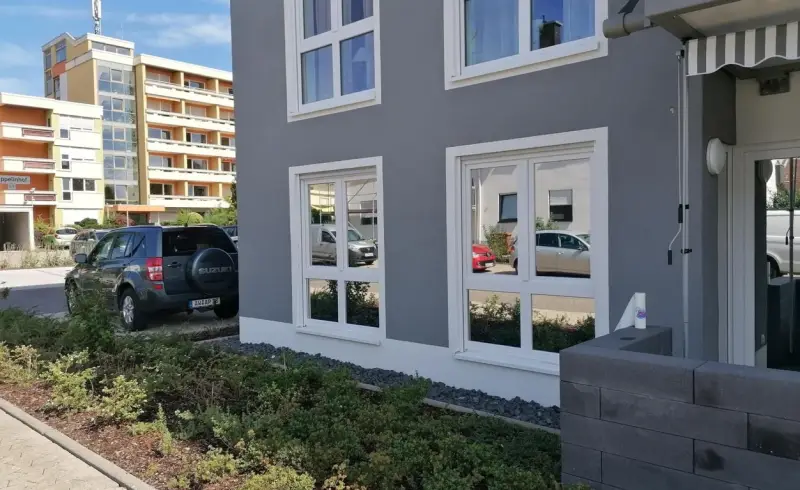 Wir haben eine verspiegelte Sichtschutzfolie installiert, die nicht nur den Blick von außen blockiert, sondern auch die Lichtdurchlässigkeit der Fenster reduziert. Dies bedeutet, dass die Wohnung tagsüber weniger direktes Licht erhält, was zu einer angenehmeren Raumtemperatur führt und gleichzeitig den neugierigen Blicken der Passanten standhält. Durch die verspiegelte Oberfläche bleibt die Privatsphäre der Kundin tagsüber gewährleistet, während die Folie auch die Helligkeit im Raum spürbar dämpft.
